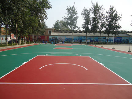 硬地酸樹脂籃球場適用于專業選手比賽和訓練使用。本公司采用100%丙烯酸水性材料,完全符合環保要求,具有較好的耐磨性能,防水、防曬、防滑、可鋪設于室內外瀝青或水泥面上。